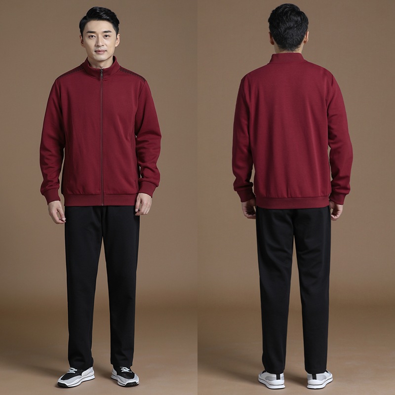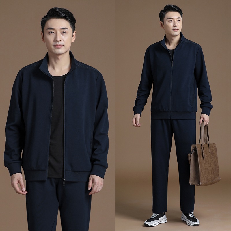 日本品质男士运动套装春秋款纯色宽松大码休闲中年男卫衣长裤运动