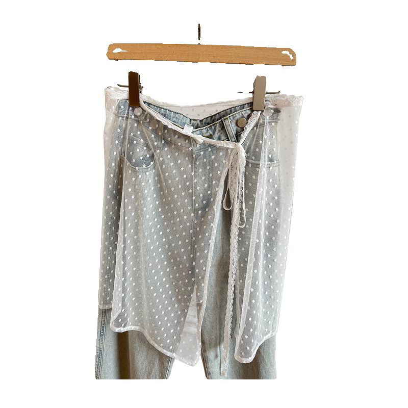 NikkiHaley波点蕾丝叠穿半身裙