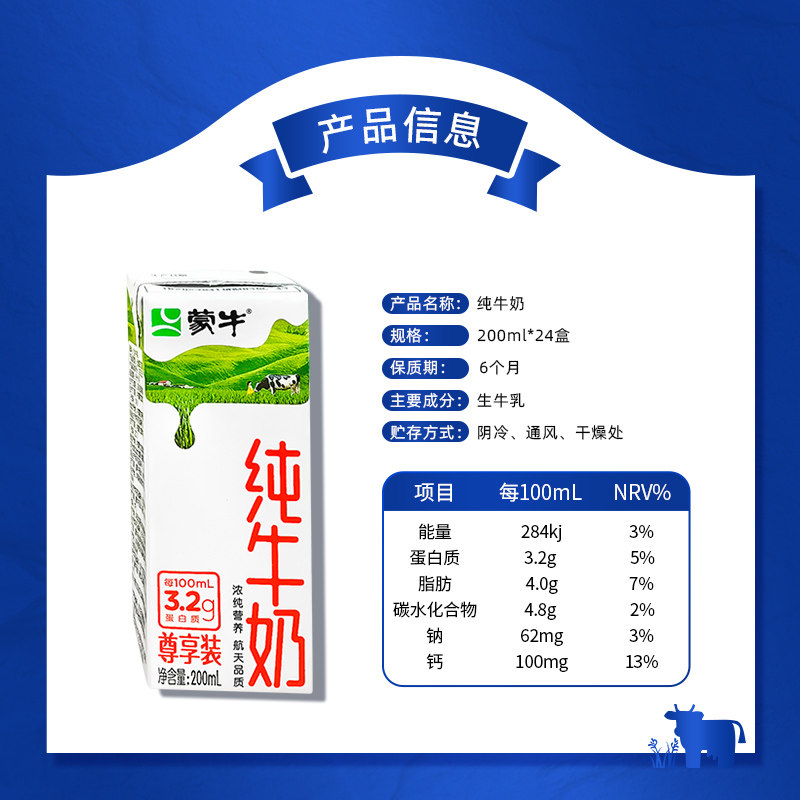 蒙牛纯牛奶200ml*24盒营养早餐奶学生成人营养早餐饮品