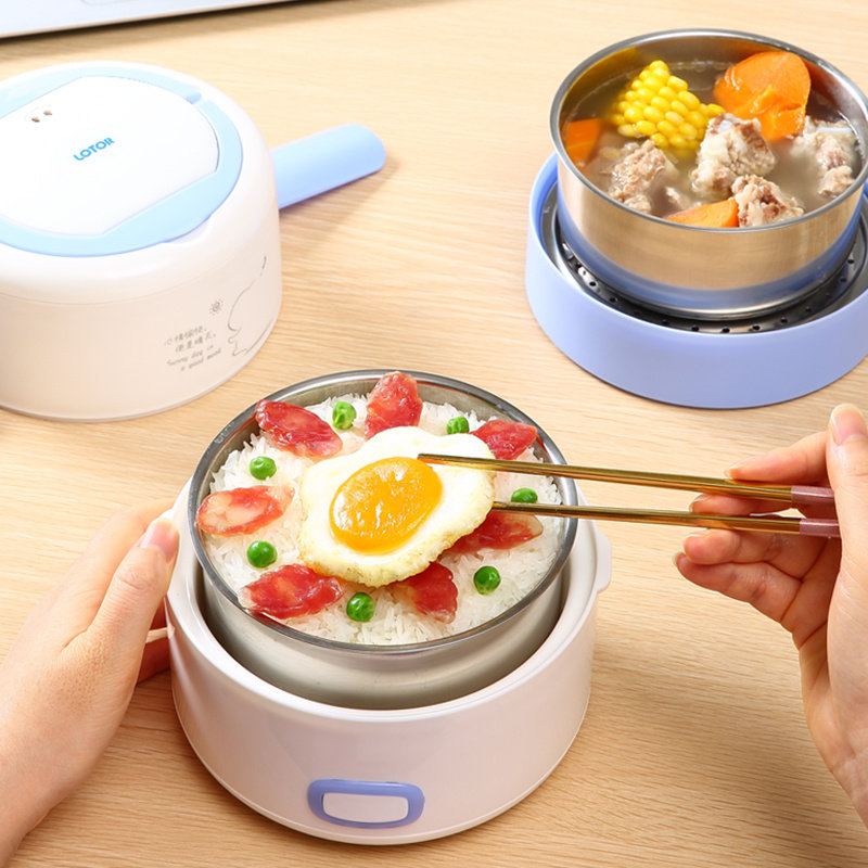小浣熊小型电蒸锅家用蒸煮一体双层便携饭盒保温多功能1一2人迷你