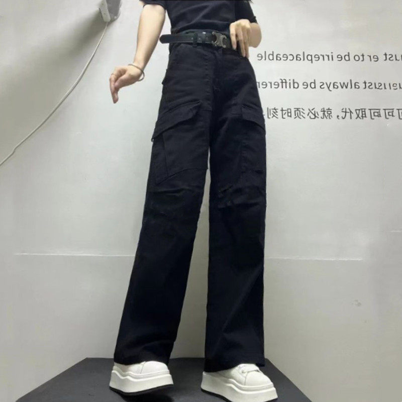 2025秋季新款牛仔长裤女高腰显瘦工装弯刀裤高个子直筒宽腿拖地裤
