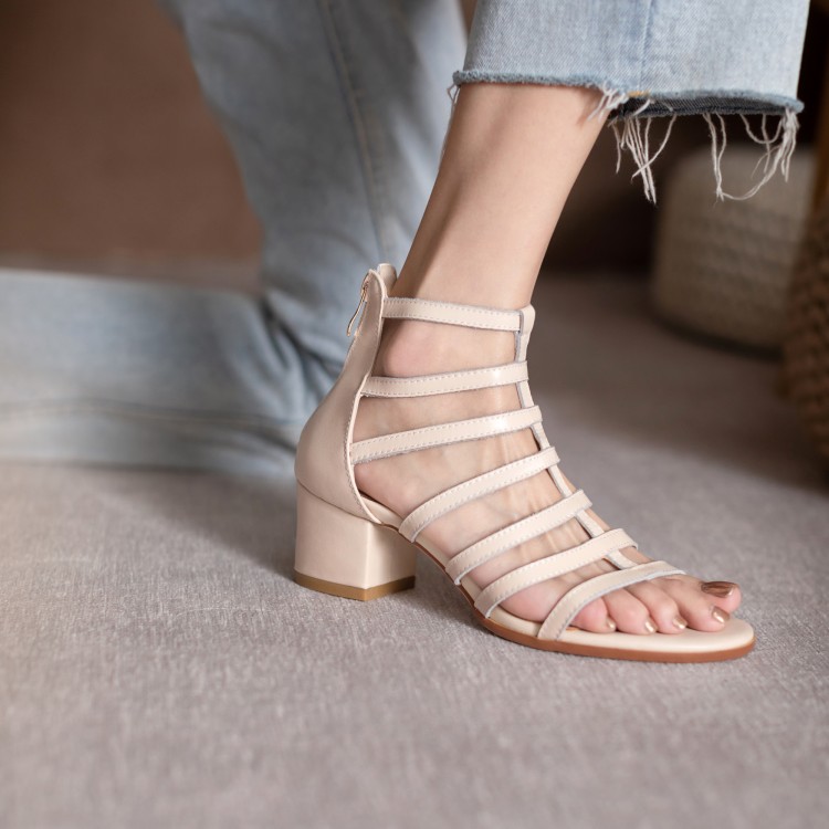 原创2026新款罗马凉鞋女名媛气质真皮粗跟复古高跟凉鞋大码凉靴女