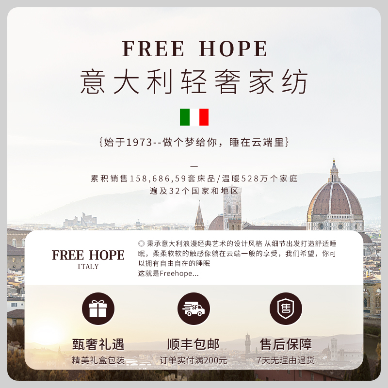 Freehope意大利加厚全棉磨毛四件套纯棉被套秋季单人床单床品四
