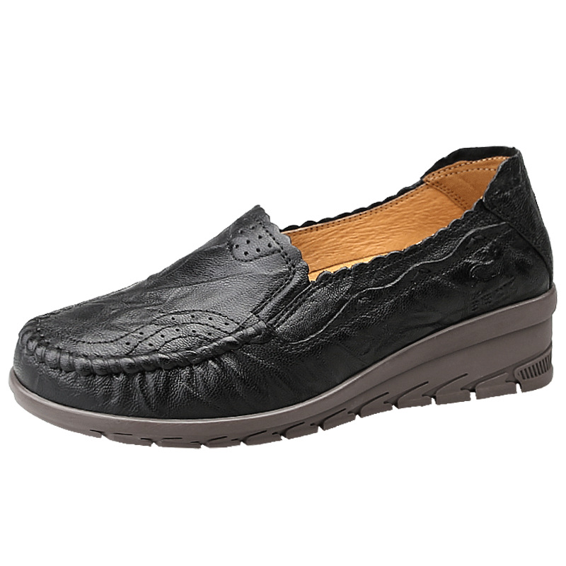 公羊女鞋秋冬季真皮舒适单鞋女一脚蹬软底女士休闲鞋中年妈妈鞋