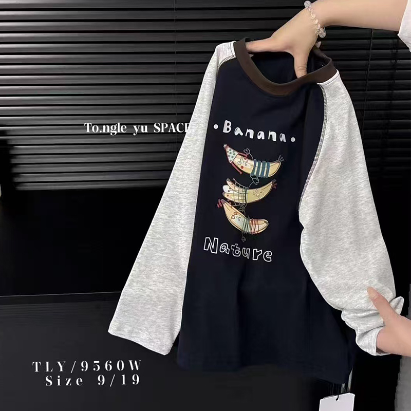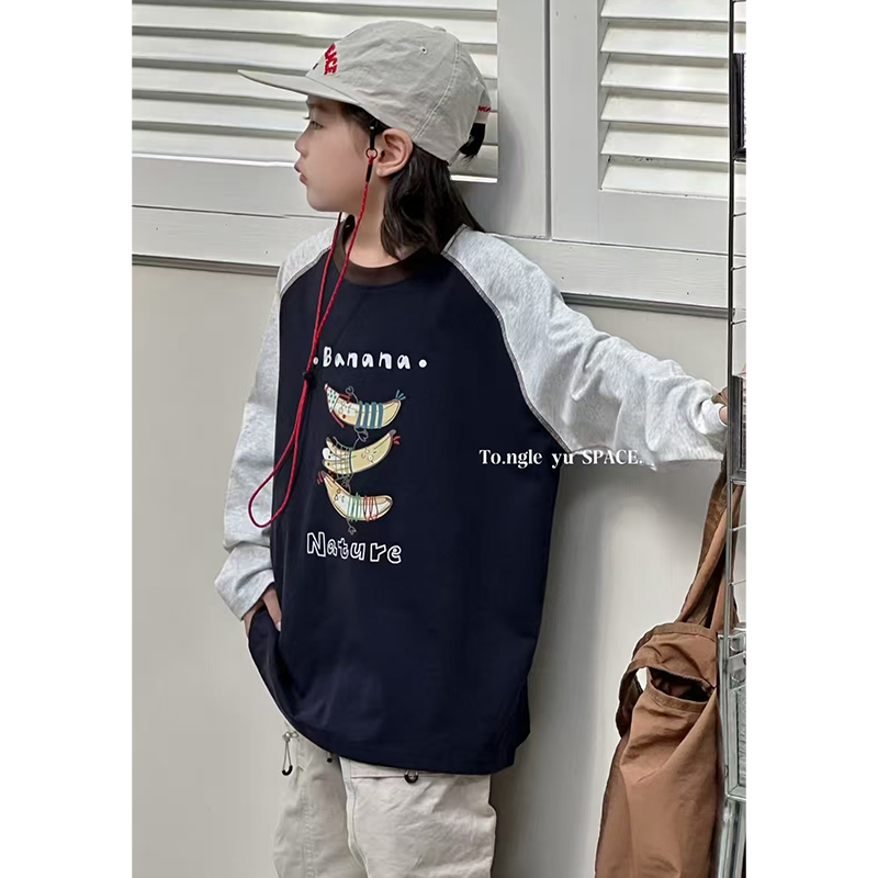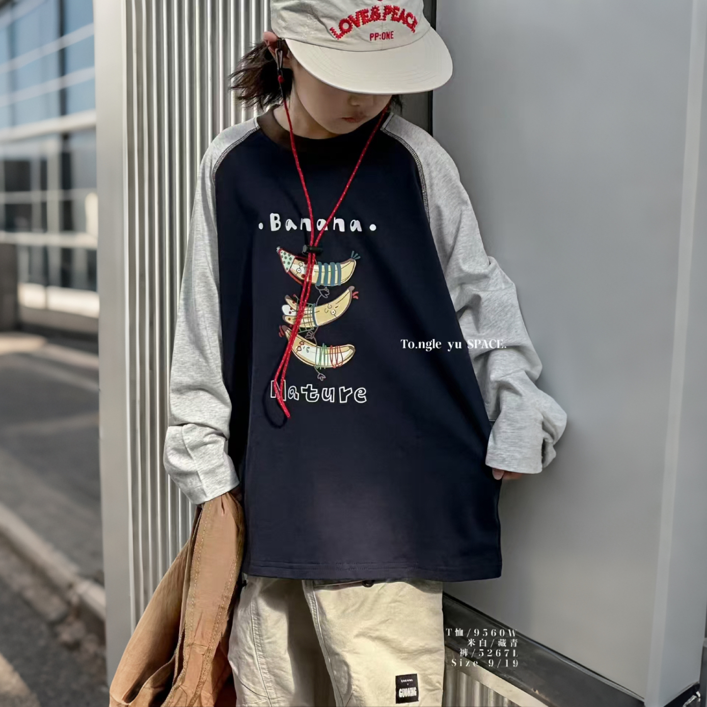 童乐鱼童装25秋装新款男童女童拼接撞色圆领卫衣儿童T恤上衣9560