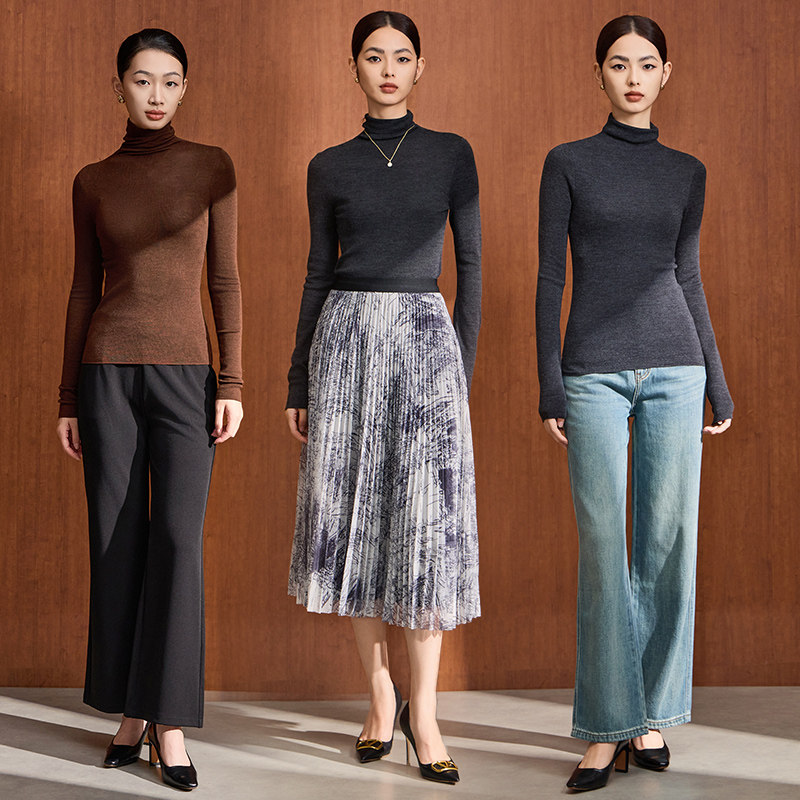 马天奴女装秋季新款深灰色高领长袖针织衫长袖羊毛衫打底衫上衣