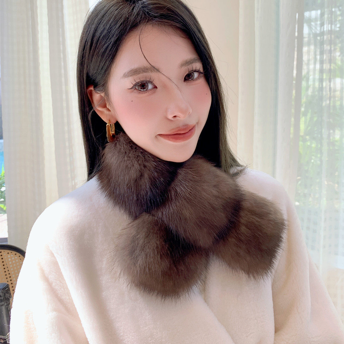 紫貂皮草围脖女貂毛水貂皮草围巾女毛领子真毛毛毛围巾冬季保暖
