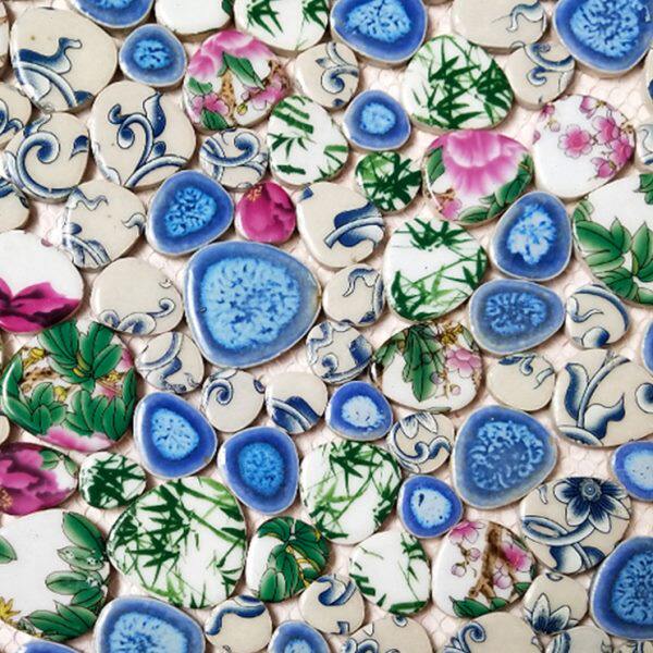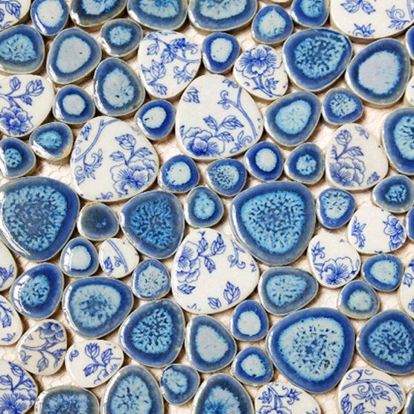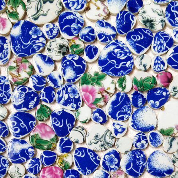 爱生活青花瓷陶瓷鹅卵石碎片背景墙浴池水池泳池温泉防滑耐磨瓷砖