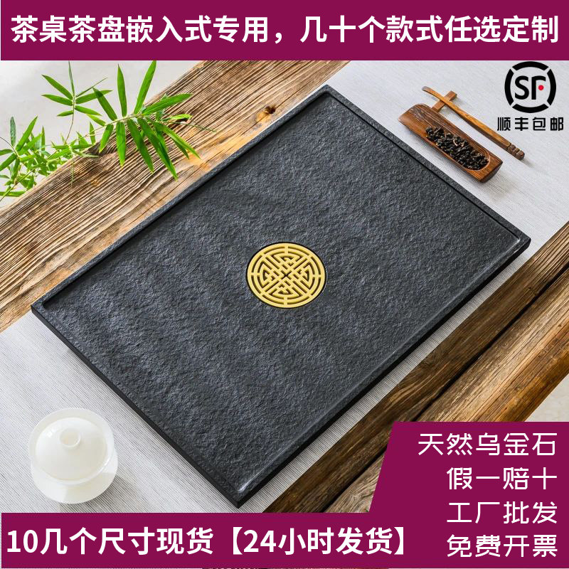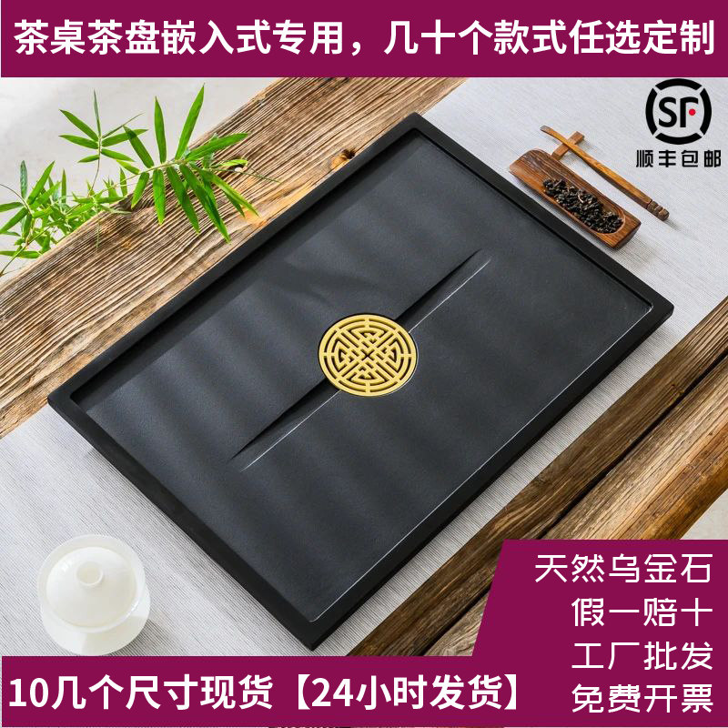 定制茶桌茶盘中间嵌入式乌金石茶台火烧石漏水盖板内嵌面板定做37