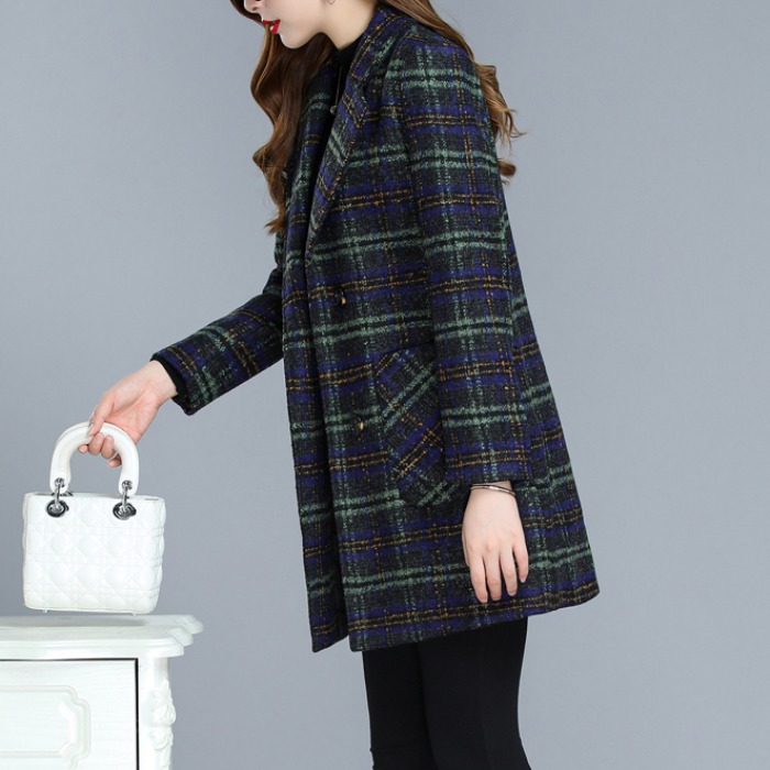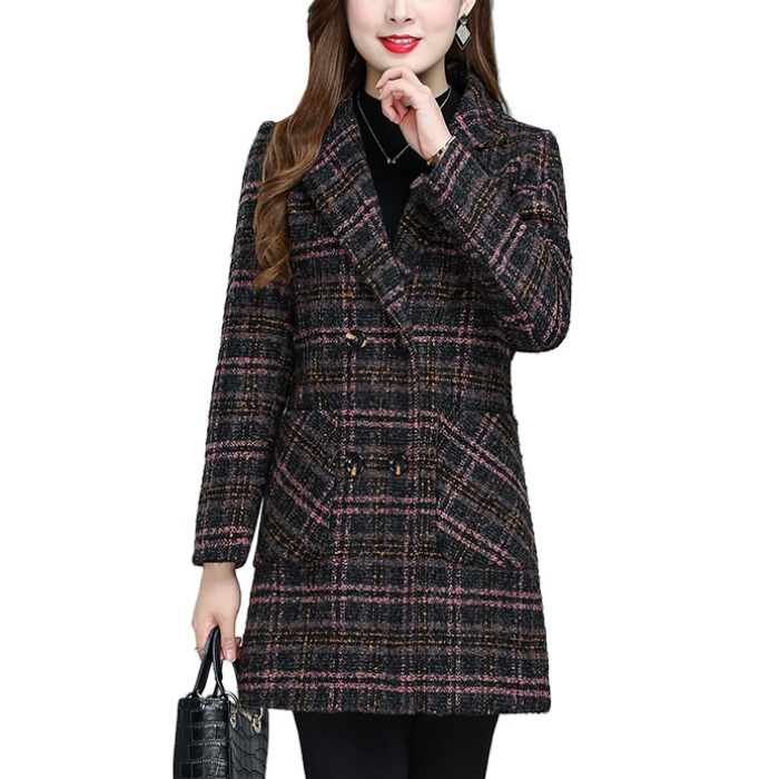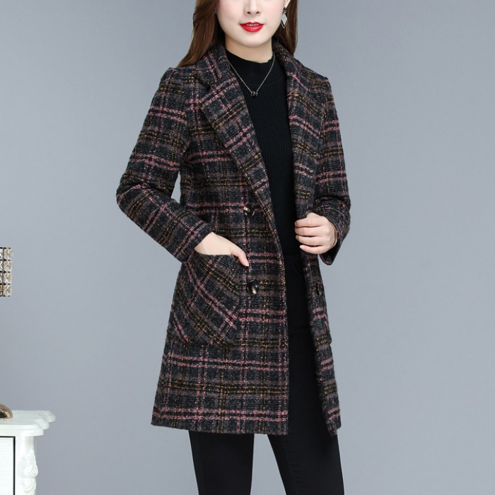 毛呢外套女中长款格子呢子大衣冬季加厚女2022年新款宽松大码上衣