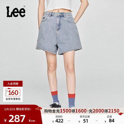 Lee25新品舒适喇叭经典五袋款设计浅蓝色女牛仔短裤显瘦潮A08075