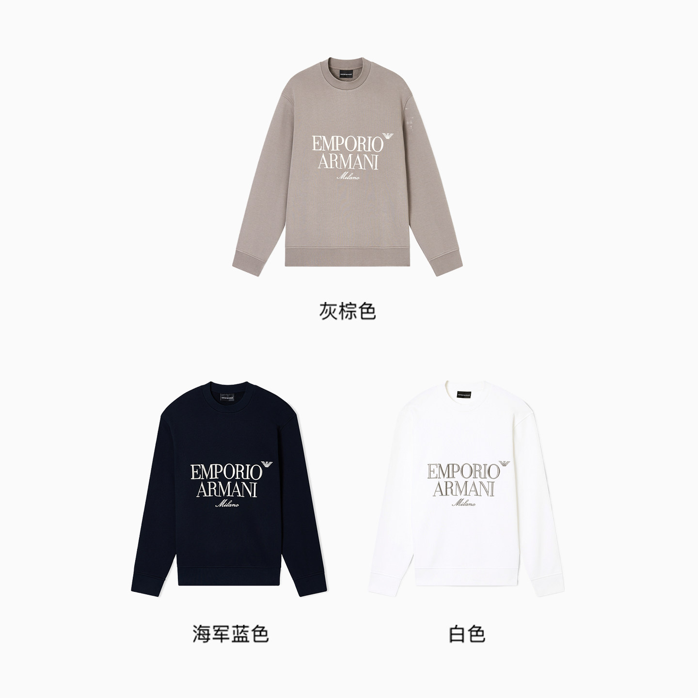 阿玛尼男士纯棉毛圈圆领刺绣卫衣