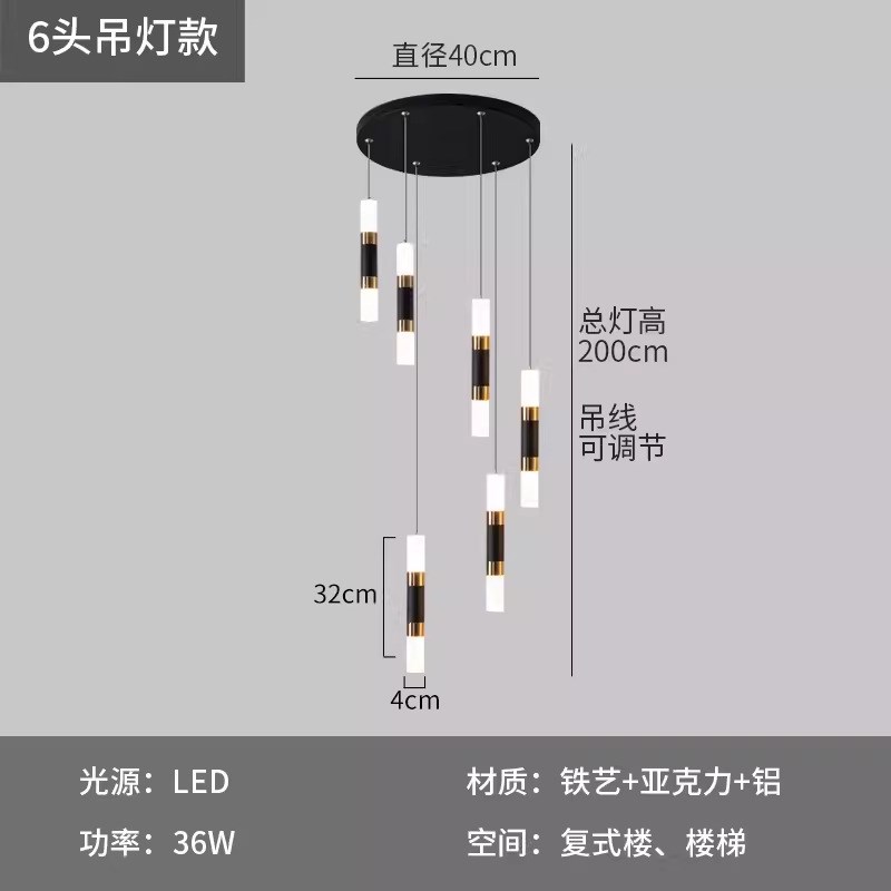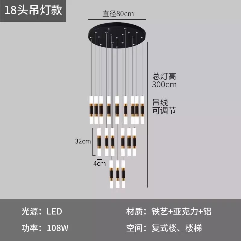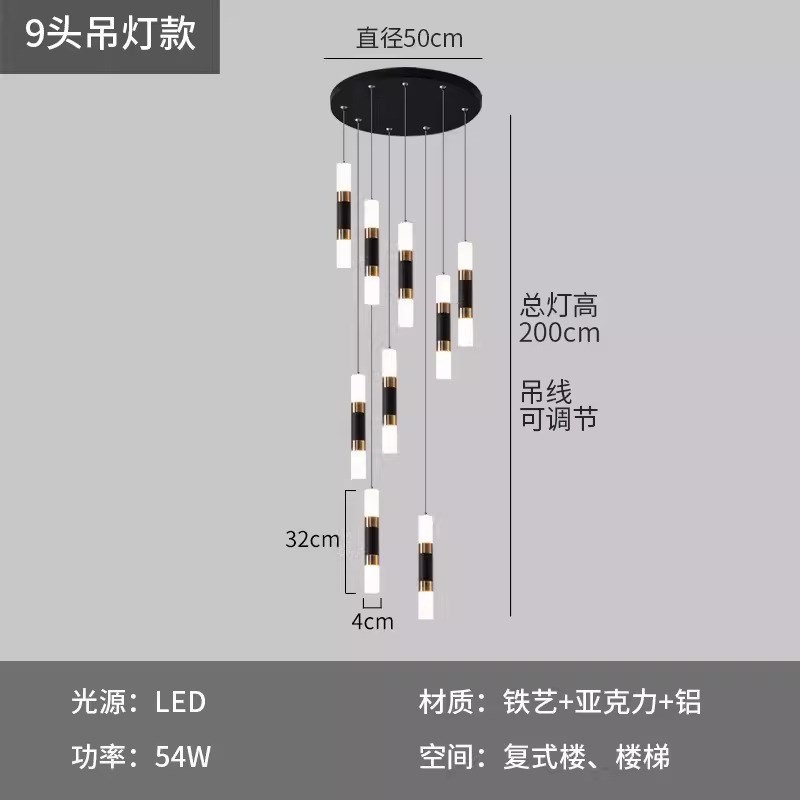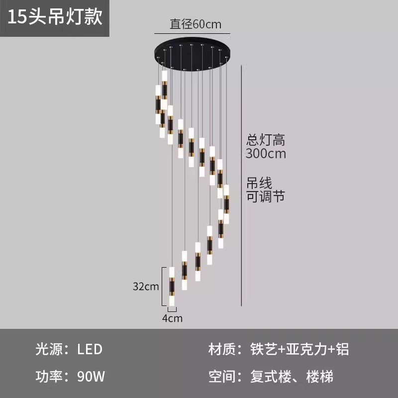 楼梯长吊灯现代简约轻奢旋转复式楼别墅客厅餐厅跃层挑高吊灯