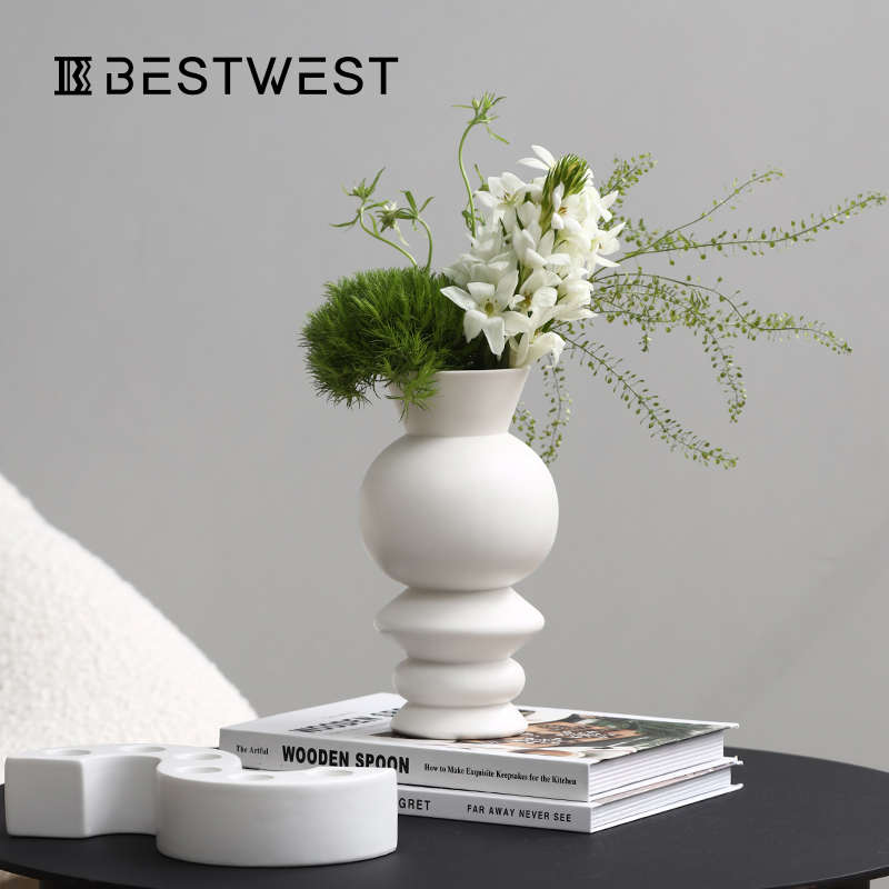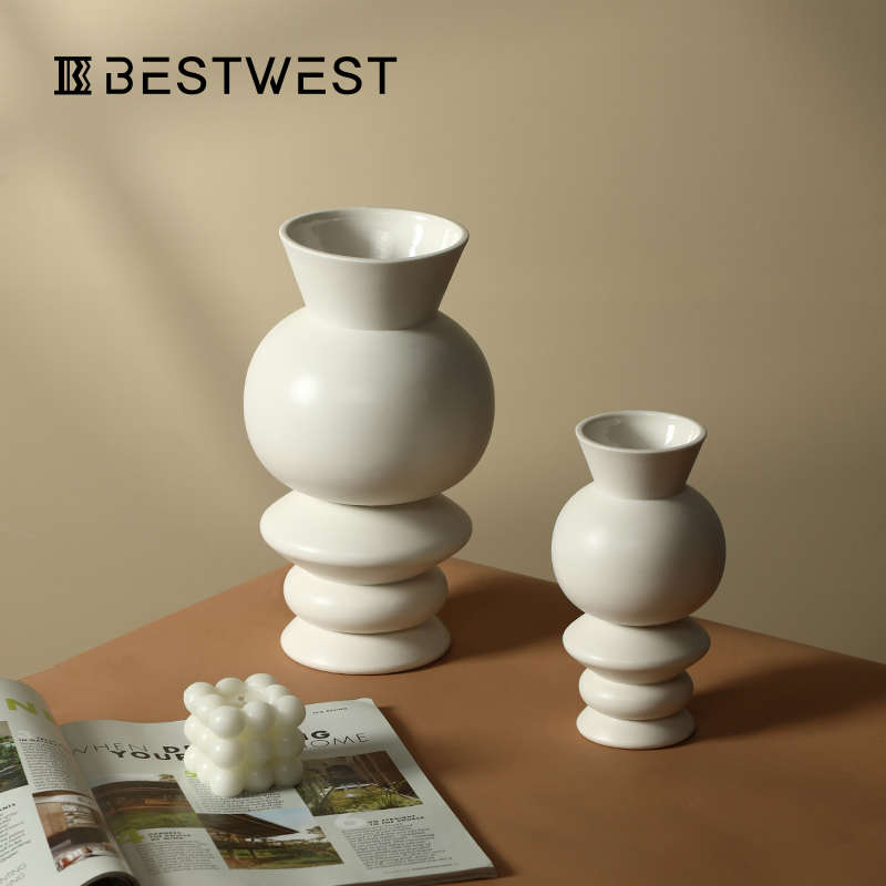 简约装饰品best陶瓷摆件釉面直家居样板间筒多层west 白色花瓶
