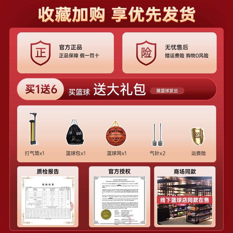 Spalding斯伯丁篮球官方正品专业比赛用7号5室外成人儿童295礼物