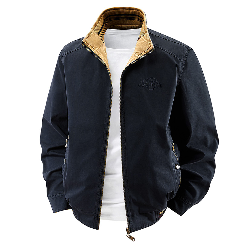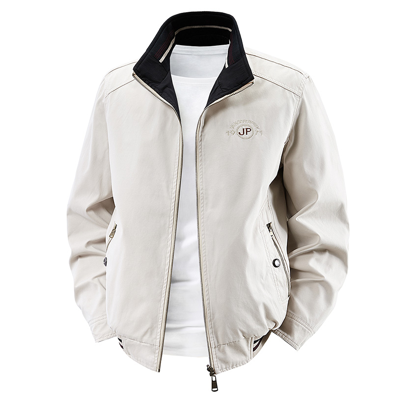 双面穿纯棉外套男款春秋季商务休闲中老年爸爸装大码行政立领夹克