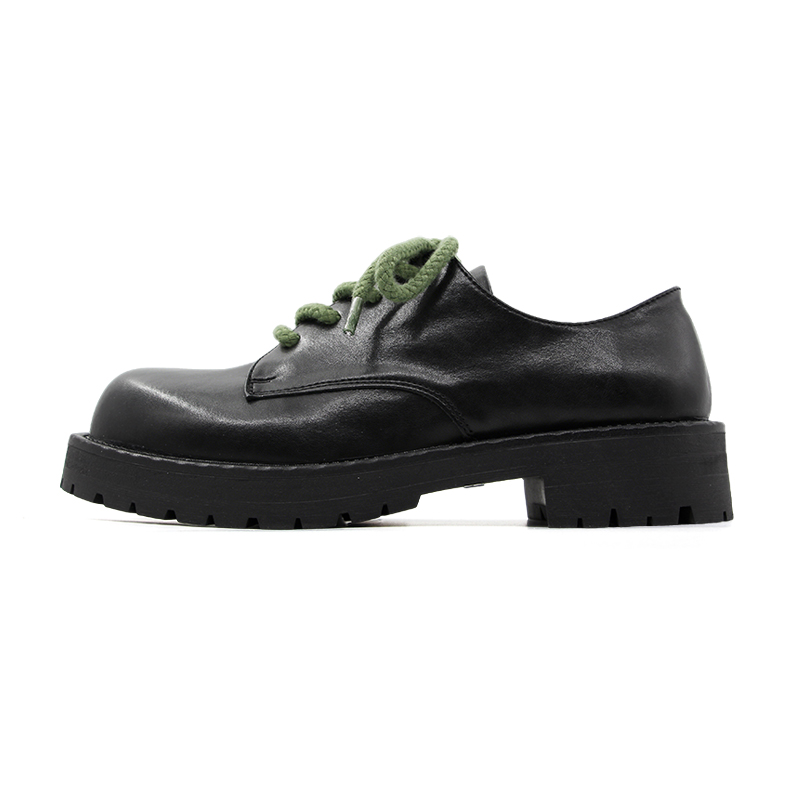 复古德比皮鞋男女士情侣绿色系带商务正装休闲厚底增高百搭乐福鞋