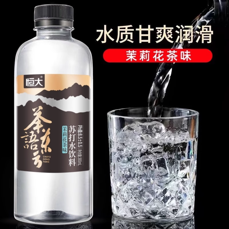 恒大茉莉花味无糖苏打水365ml×6瓶装无汽饮料饮用水弱碱整箱优惠