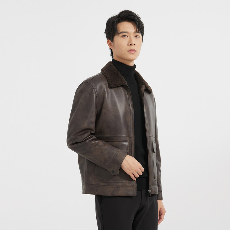 【商场同款】利郎奥莱真皮皮衣男2025冬季新款轻奢外套男Q4DZP008