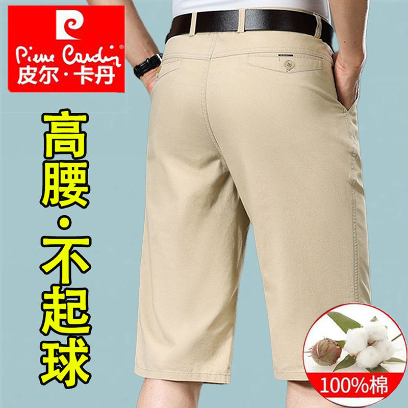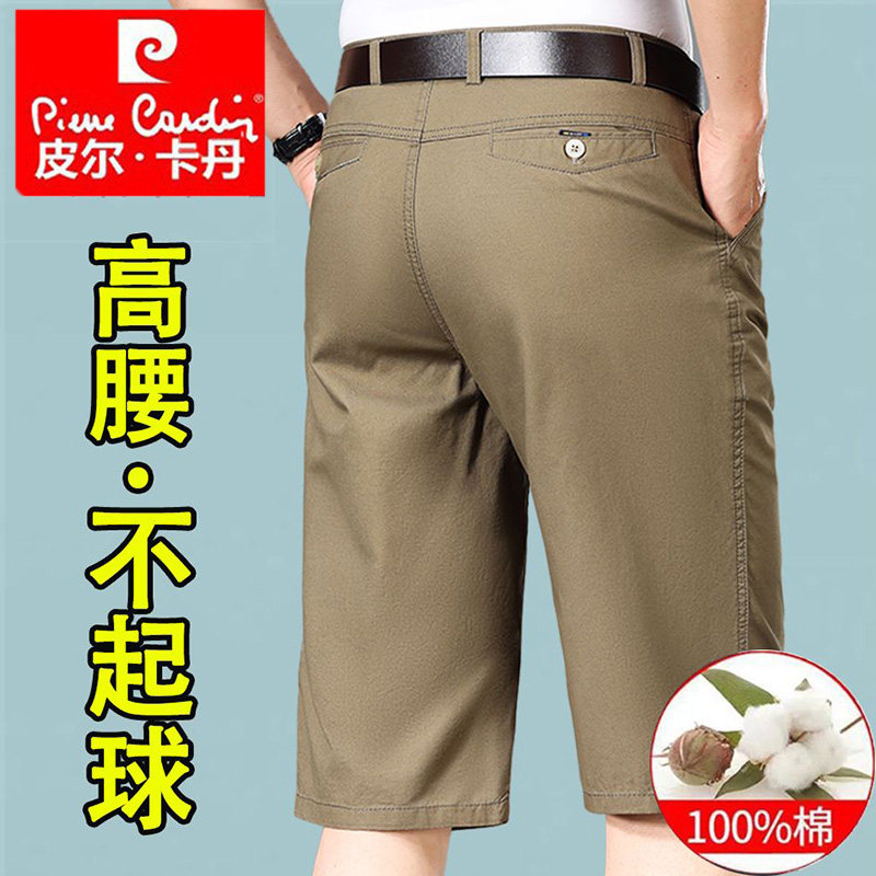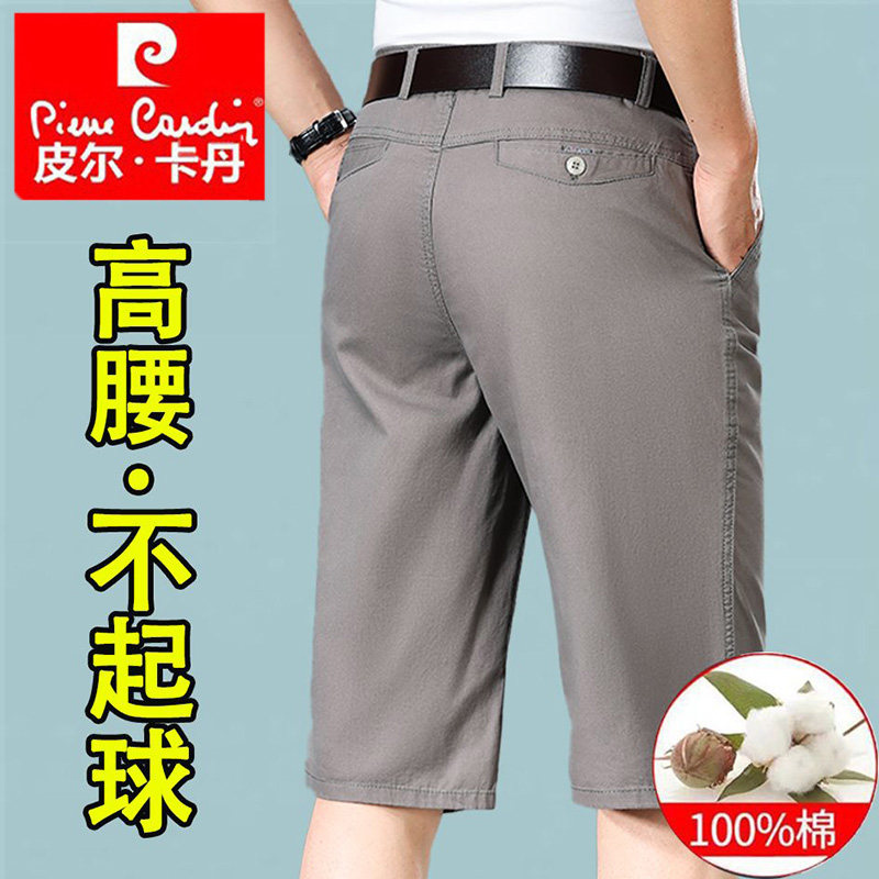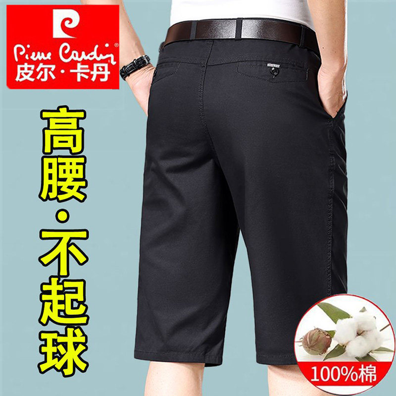 皮尔卡丹秋冬厚款男士纯棉七分裤中老年直筒宽松短裤高腰深档裤子