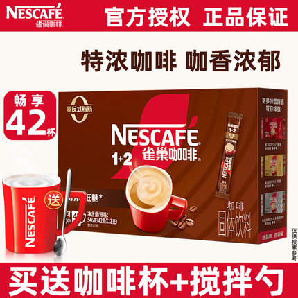 雀巢咖啡意式特浓低糖三合一速溶咖啡学生提神1+2咖啡粉42条盒装