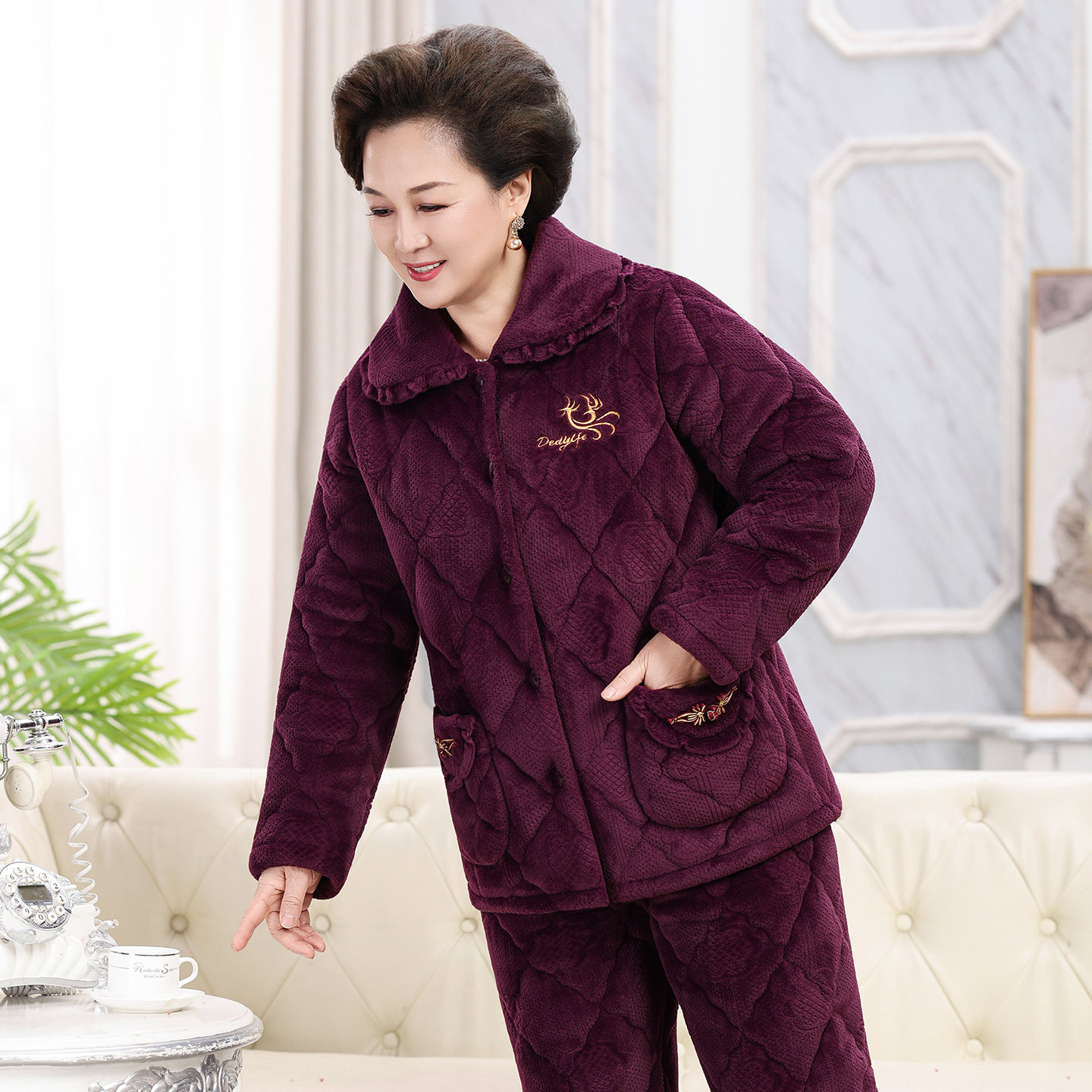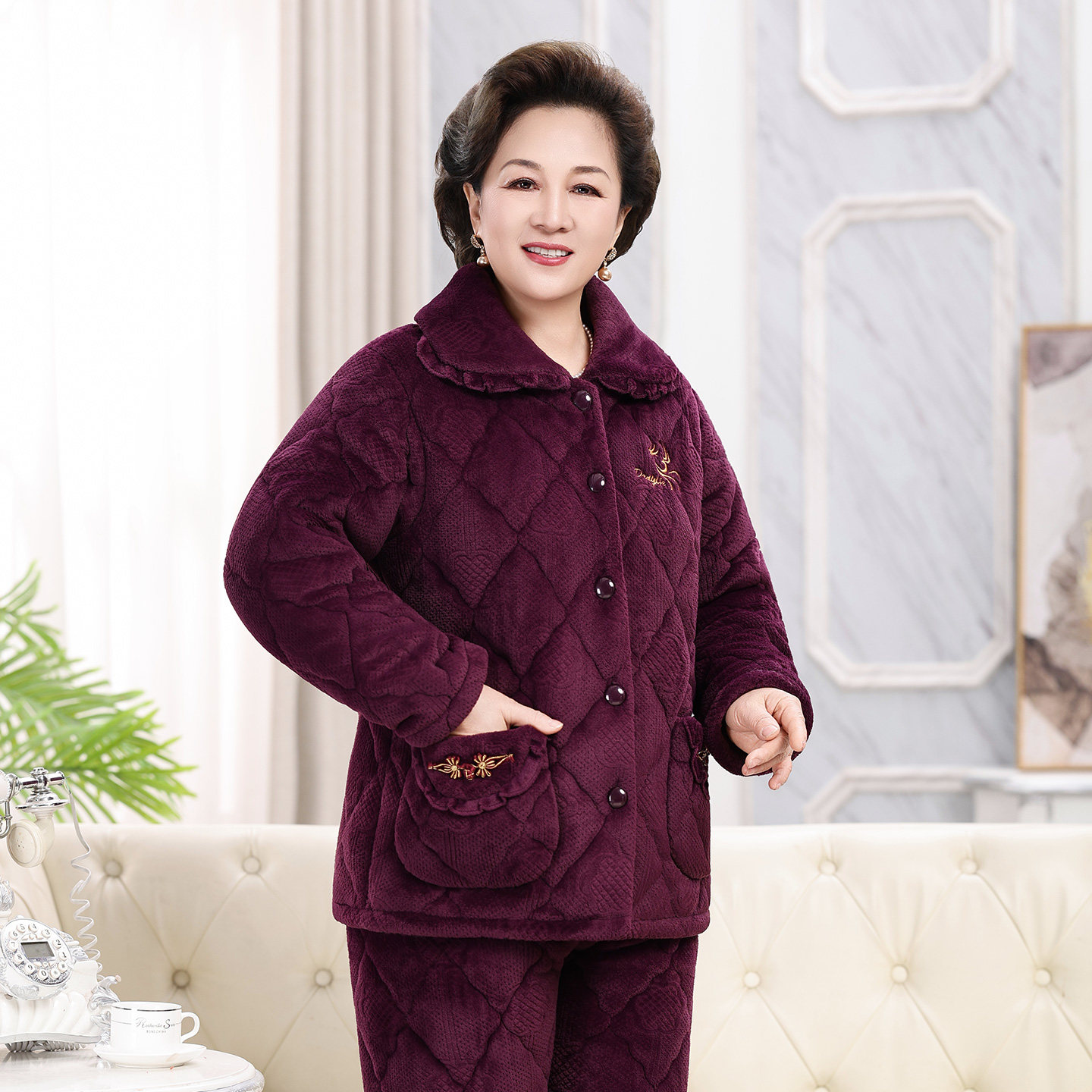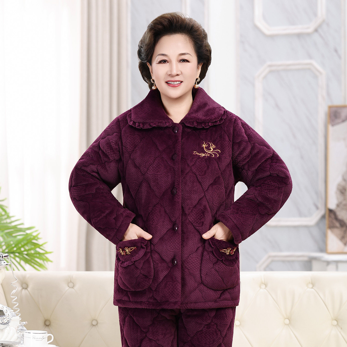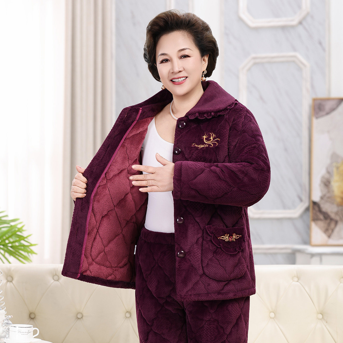 送妈妈送奶奶三层加厚夹棉睡衣