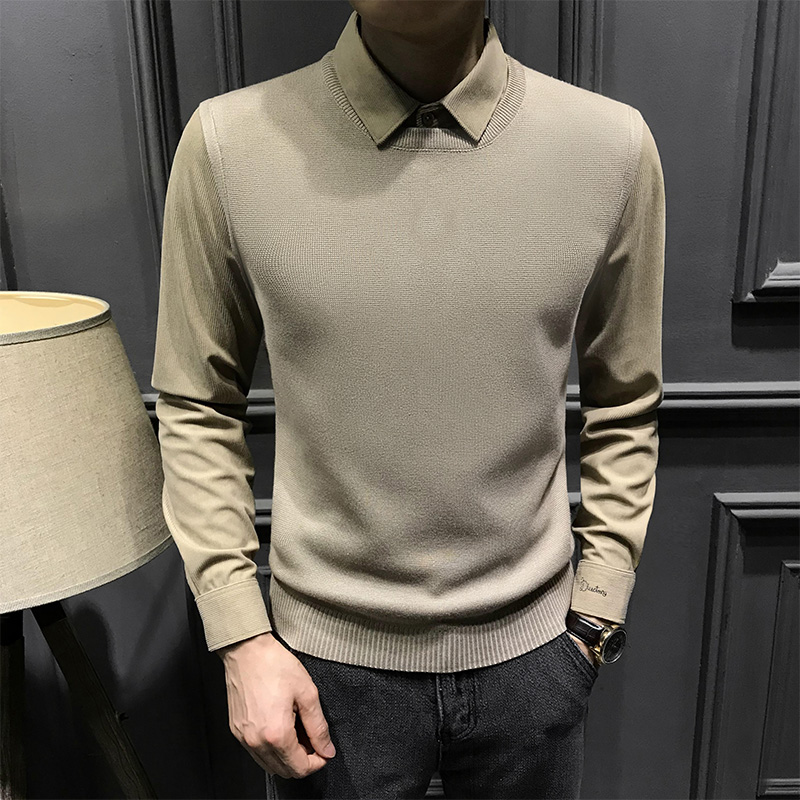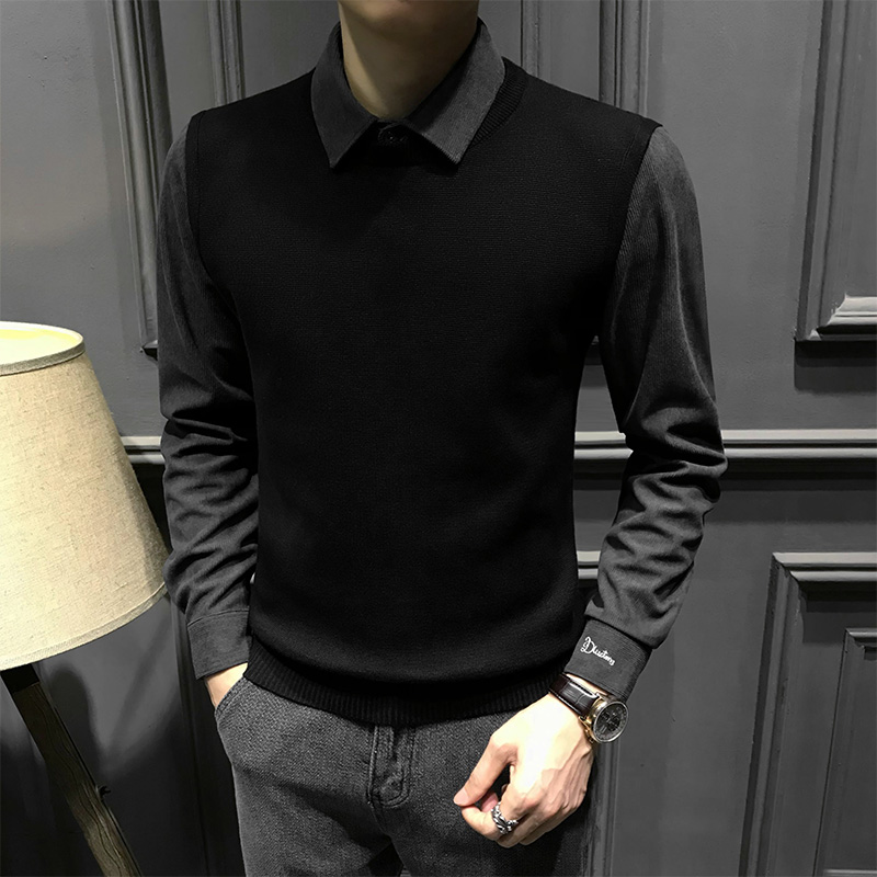 冬季假两件毛衣男士2025新款加绒针织衫商务秋冬内搭打底男装上衣