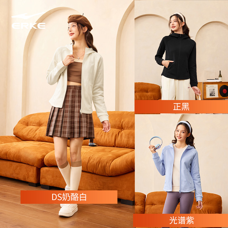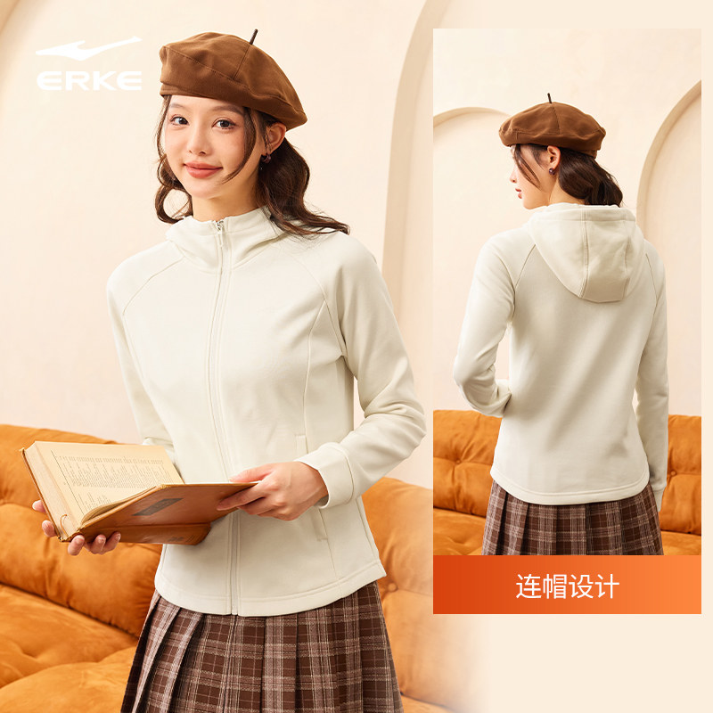鸿星尔克外套女冬季新款女士修身加绒卫衣针织夹克运动服女装女款