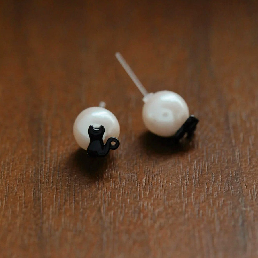 OSEWAYA日系可爱猫咪珍珠耳饰