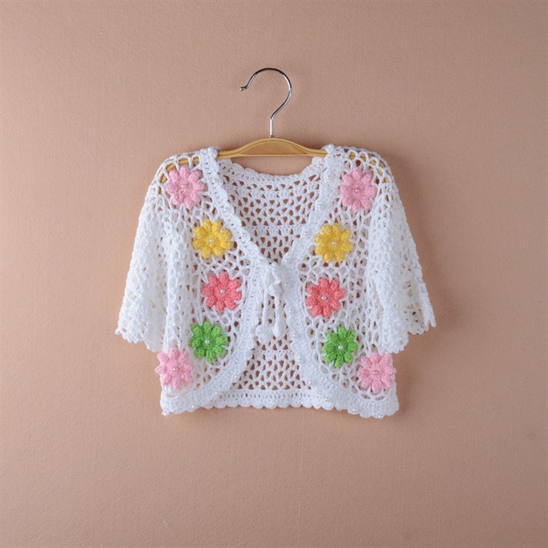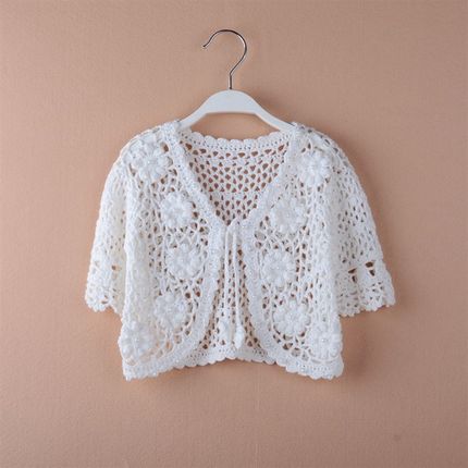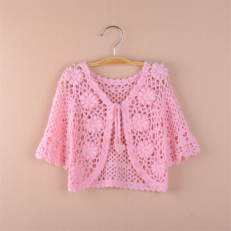 女童装夏季薄款纯棉线儿童中袖披肩外套针织衫宝宝百搭Y空调服坎