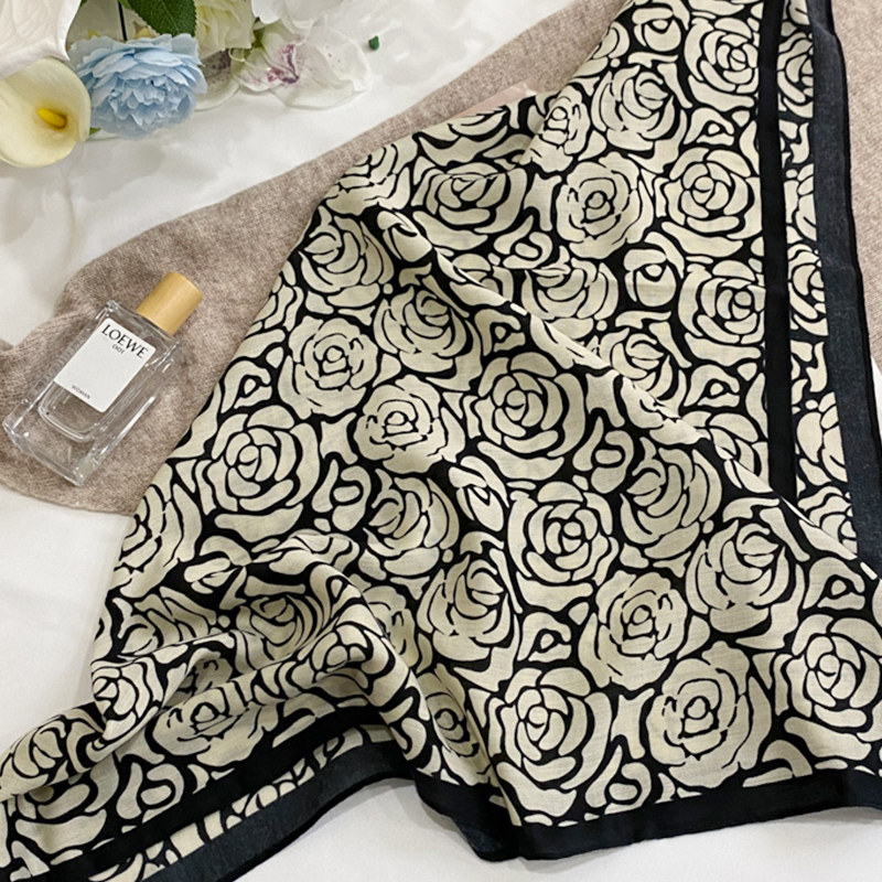 磁扣棉麻小方巾护颈丝巾女2025新款秋冬新款百搭高级领巾懒人围巾