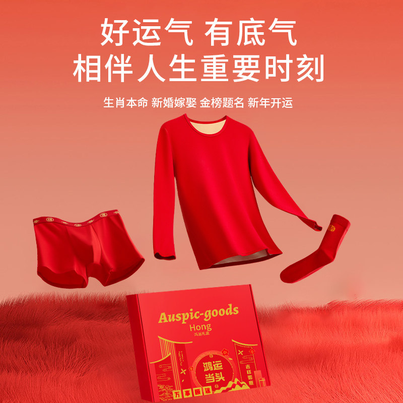 雅鹿2026马年本命年保暖内衣套装女士大红色结婚衣服秋衣秋裤男款