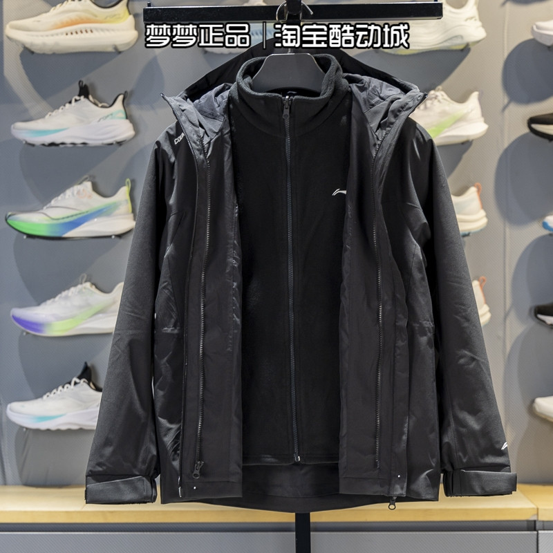 李宁女士2025冬新款梭织休闲运动三合一冲锋衣连帽外套AWBV090-1
