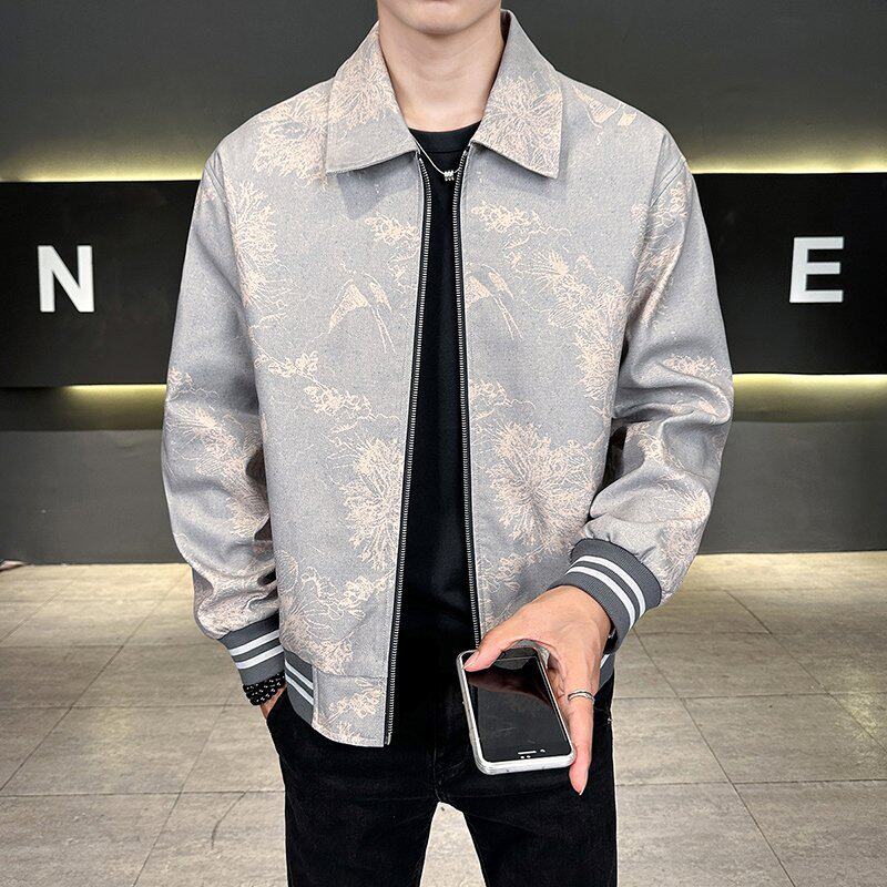 欧货高端潮牌春季翻领夹克男士美式复古轻奢外套休闲痞帅上衣男装