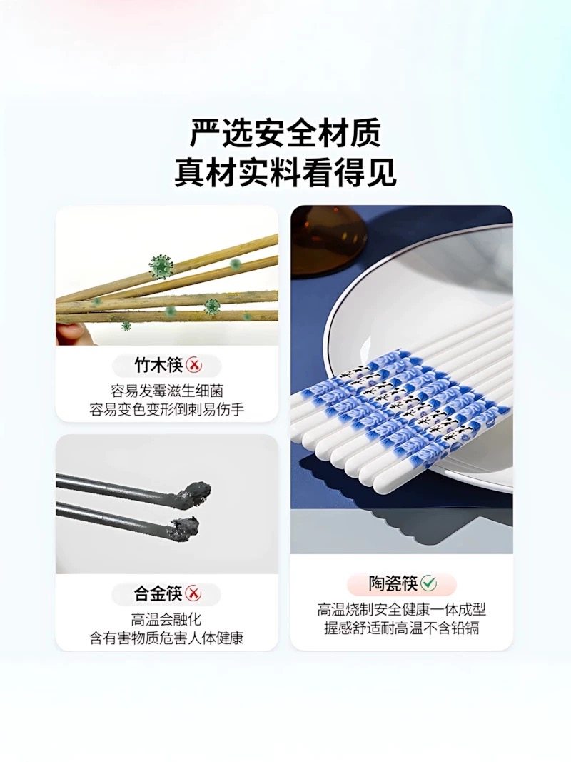 景德镇陶瓷筷子家用防滑防霉抗菌耐高温易清洗食品级环保高档餐具