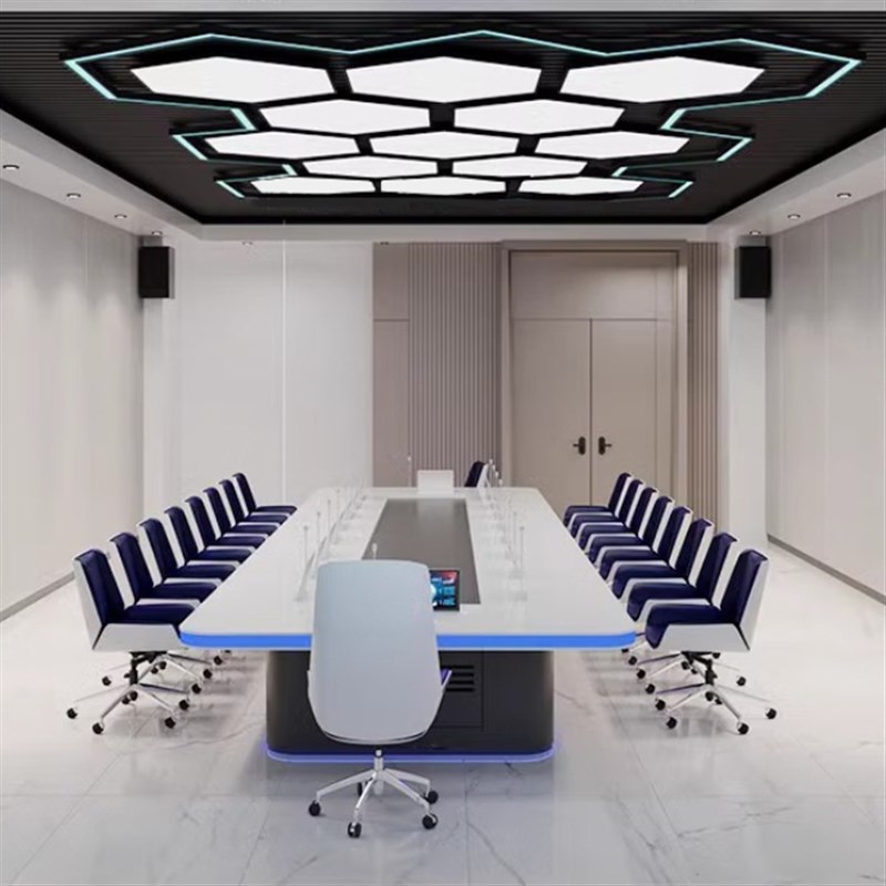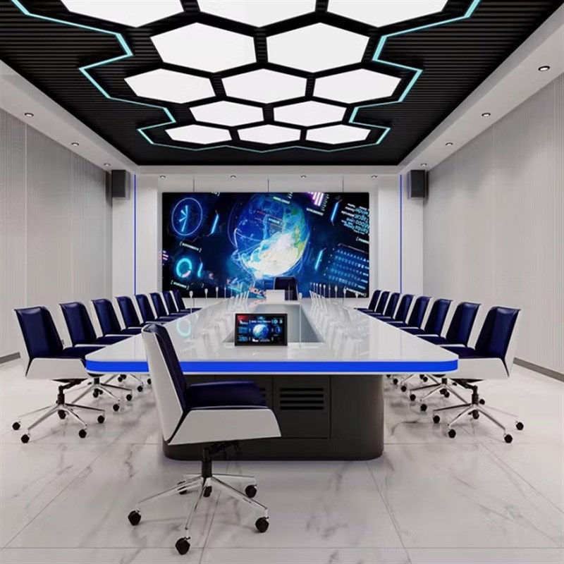 热销现代科技感无纸化会议桌长桌智能中控升降器显示屏大型多人会