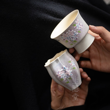 圭隐堂手绘绣球花堆雕陶瓷茶杯田园风女士主人杯专用单杯品茗杯子