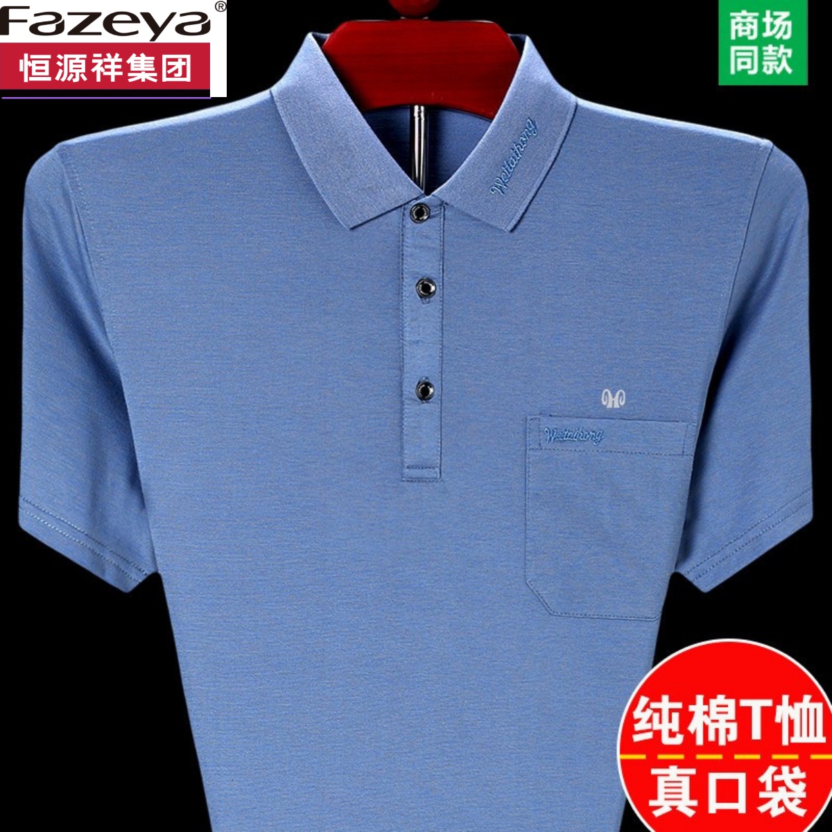 恒源祥集团彩羊短袖t恤男纯棉薄款带领真口袋宽松中老年爸爸夏装