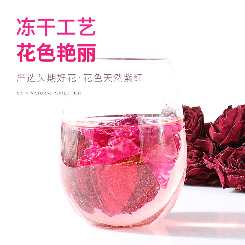 西瑞合元丨云南重瓣墨红玫瑰花冠茶 中朵冻干玫瑰70克/盒超值装