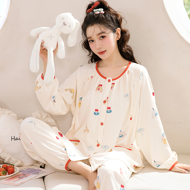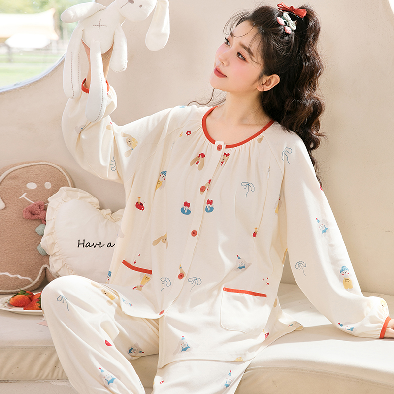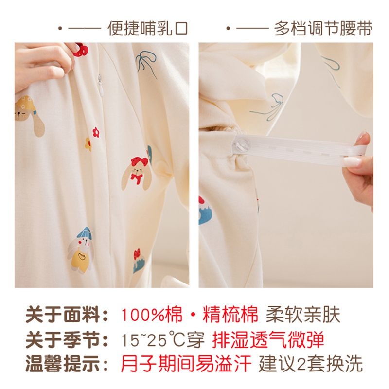 家时光月子服纯棉全棉吸汗春秋产后孕妇哺乳睡衣12月份产妇家居服