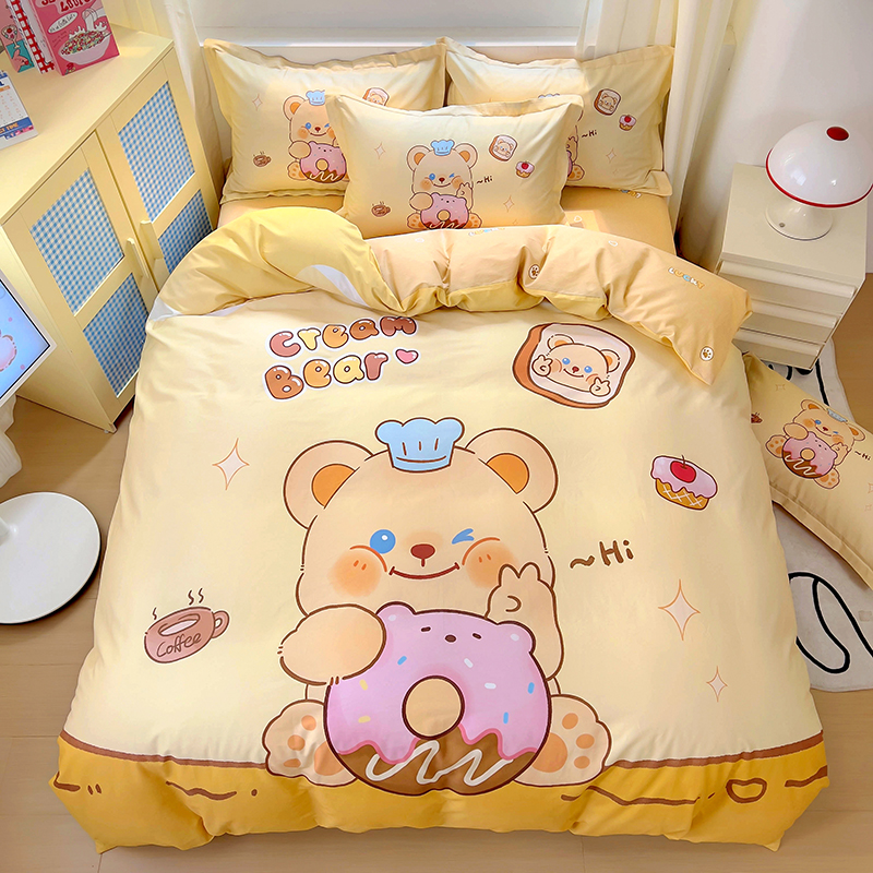 儿童四件套纯棉公主女孩被套家用宾馆单双人宿舍卡通三件套床笠款