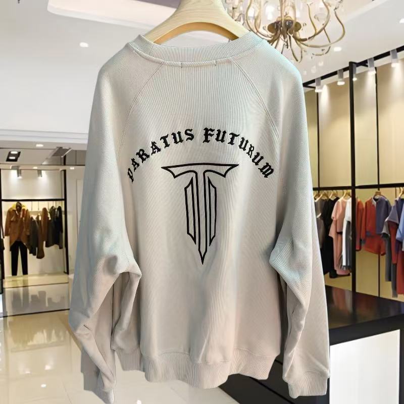 秋冬新款男女同款米色套头休闲卫衣301574宽松加绒加厚时尚潮流新