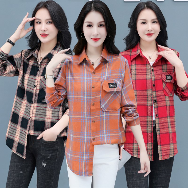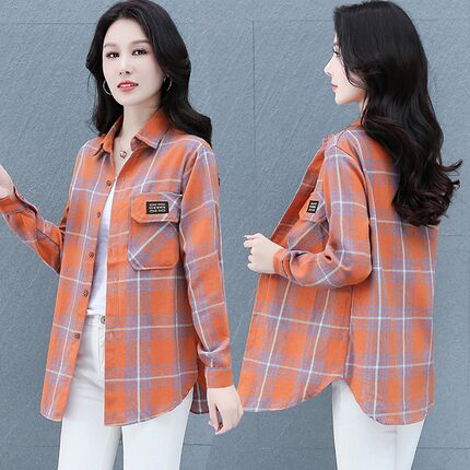 纯棉格子衬衫女春秋新款长袖休闲宽松大码夏季薄款全棉衬衣上衣女