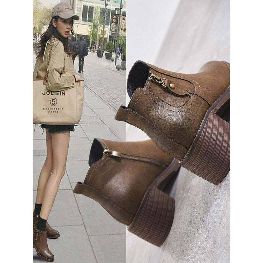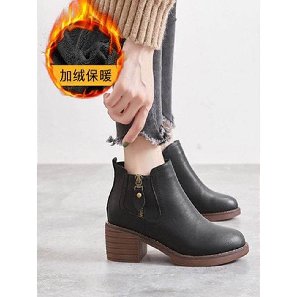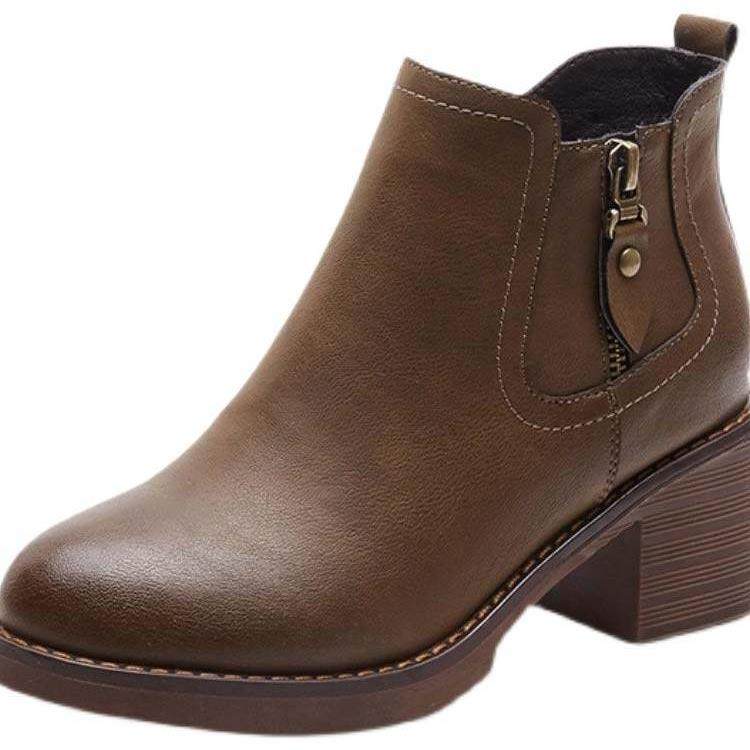 潮牌网红马丁靴女显瘦2025春秋新款百搭真皮粗跟高跟加绒覆古短靴