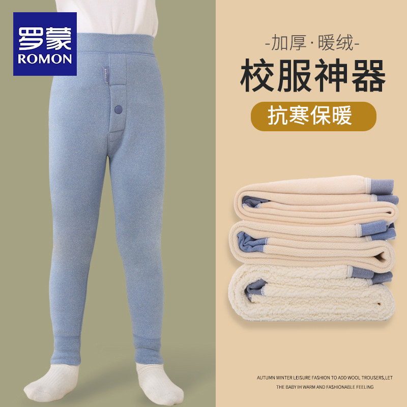 罗蒙儿童校服神器保暖裤男童棉裤冬季加厚加绒女童内穿绒裤打底裤