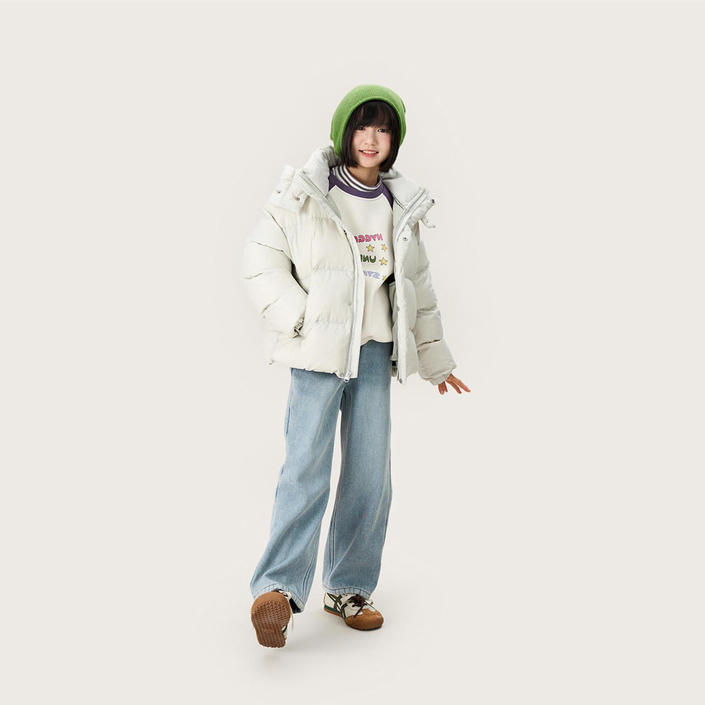 2025冬装女童蓬松泡芙牛仔裤儿童加厚牛仔直筒裤中大童女孩休闲裤