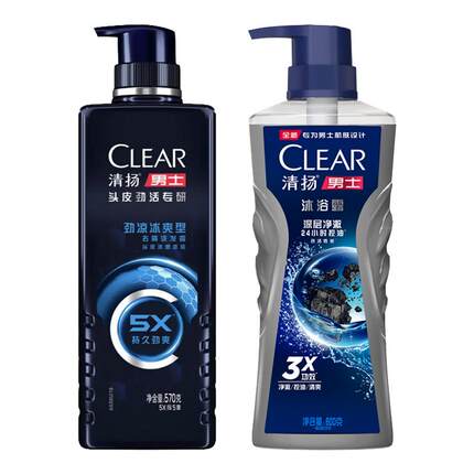 清扬男士专研去屑洗发水控油清爽洗发露净澈清凉沐浴露洗沐套装