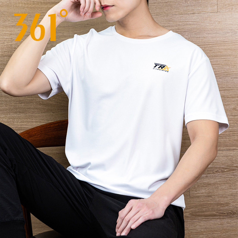 361白色短袖T恤新款男装 361度休闲跑步上衣圆领半袖百搭体恤正品