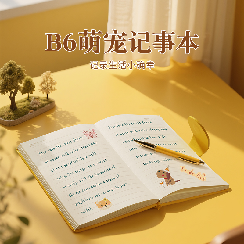 高颜值原创卡通记事本B6便携加厚笔记本子ins风学生可爱少女心日记本精致软皮记录本日常学生书写简约手账本