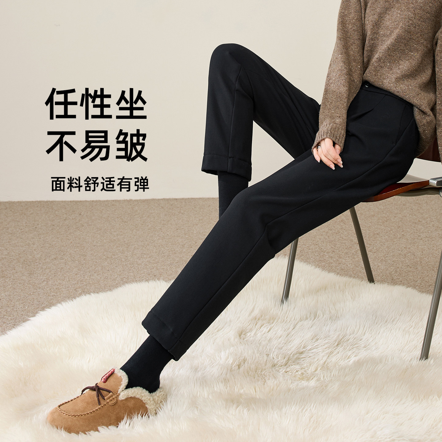 逸阳冬季新款加绒加厚西装裤直筒宽松显瘦哈伦烟管休闲裤大码黑色